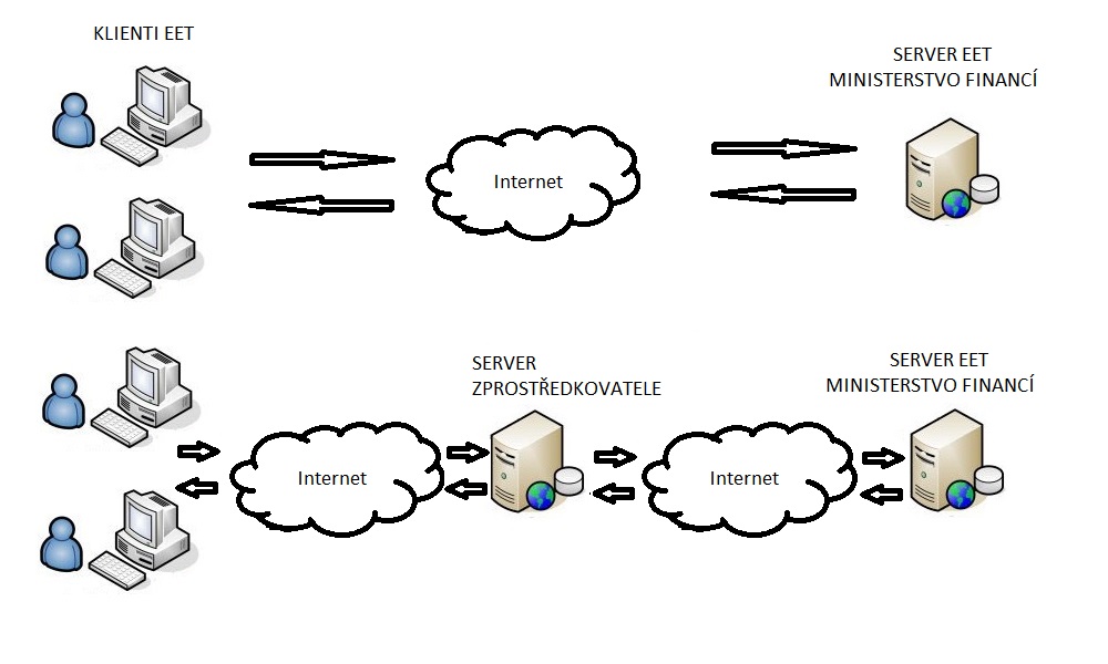 (viz. obrázek níže - dolní část) od zbytku trhu. Zásadním negativem proti mého návrhu je, že pokud dojde k změně na straně serveru EET ministerstva