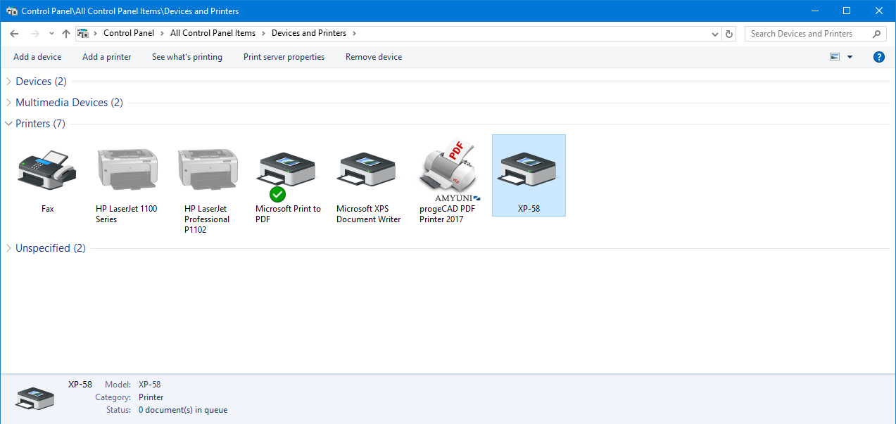 Naistalované tiskárny ve Windows